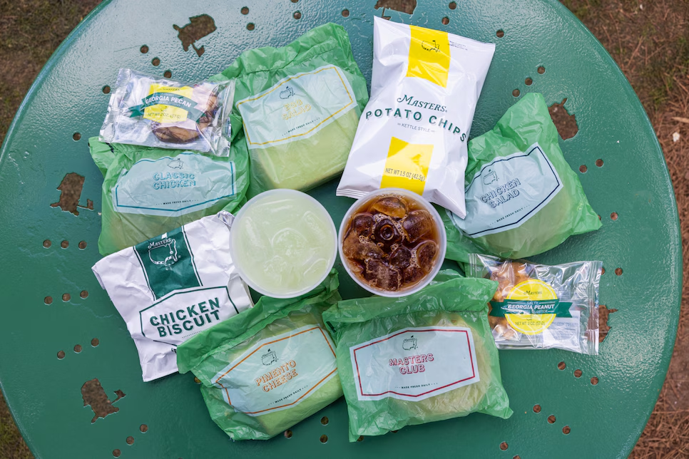 The merch situation is exactly as advertised. Everything is Masters branded. No sponsors anywhere. You cannot even tell it is Peter Millar under the logo. The beer is branded Masters. The soda is branded Masters. You walk up, tell them what number item you want in what size, they pull it and hand it to you. And right next to the shop is a pop-up UPS station where you ship your purchases home so you are not carrying bags around all day. These people have been doing this for decades and it shows. Every single thing is dialed.