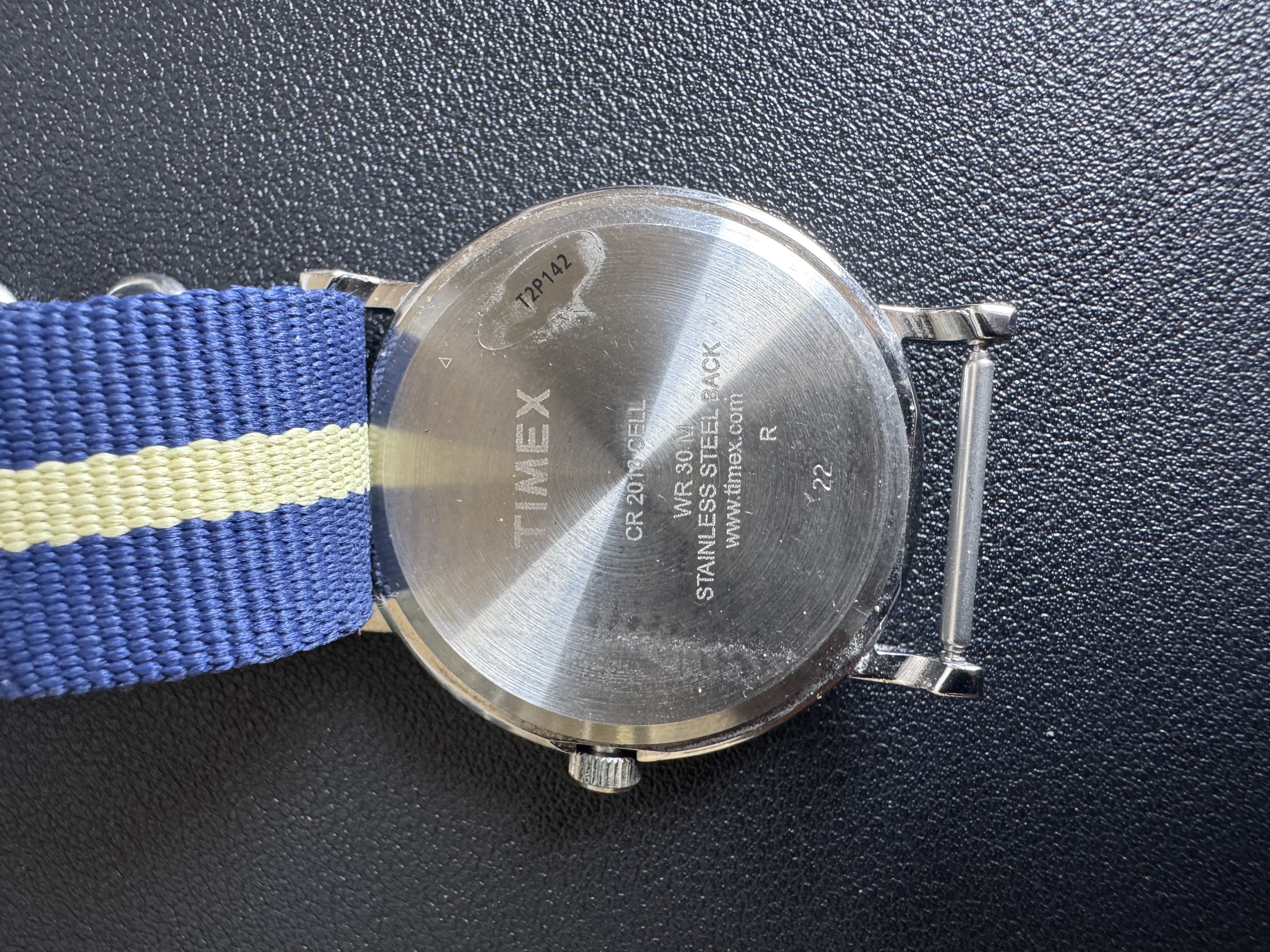 My exact model is a Timex Easy Reader reference number T2P142 with the Indiglo. It's a beautiful piece with the stock strap that it's on, actually matching the second hand in light navy.