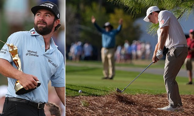 Cam Young on the other hand hits a wedge that I thought was going to end up a foot away. Unfortunately it did not spin and settled around 10 feet. Fitzpatrick hits a decent chip but still leaves himself 8 feet for par. Young putts his third to about 6 inches. Fitzpatrick now knows he has to make it to send it to a playoff. He pushes it right, and Cam Young taps in to win his second PGA Tour event.