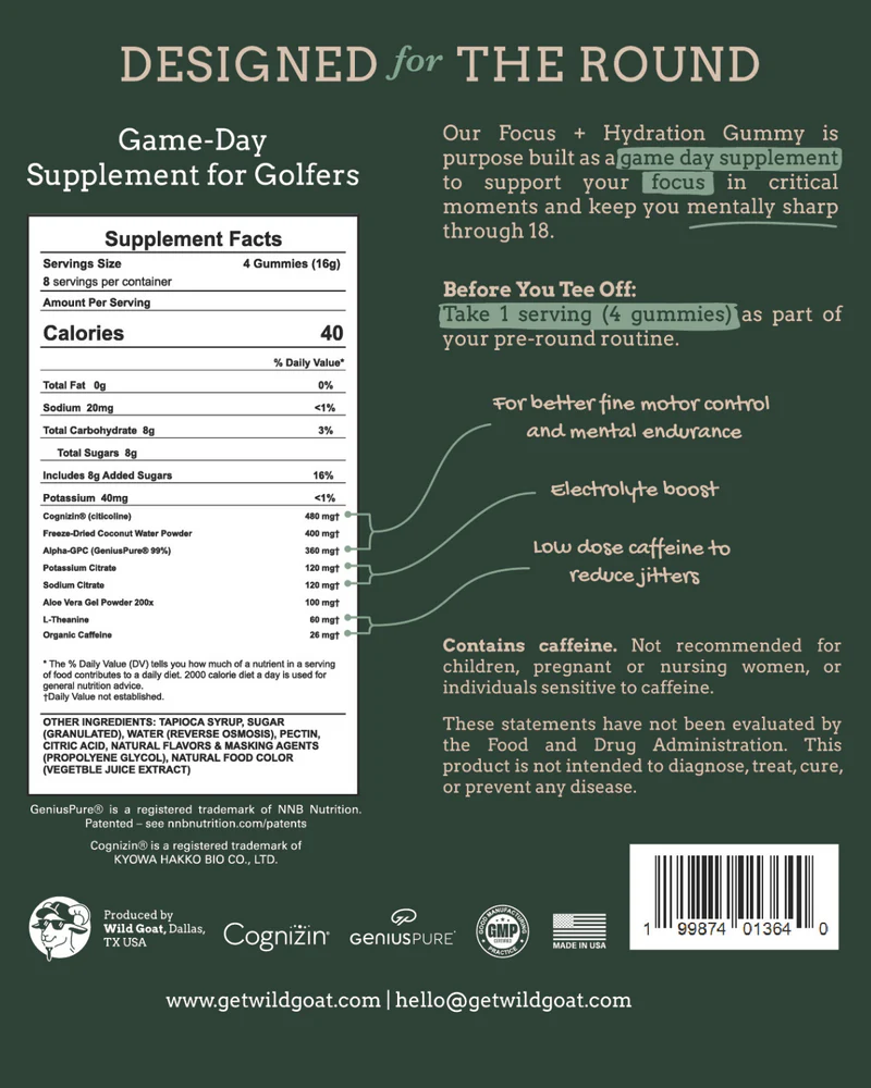 The product is called the Wild Goat Focus and Hydration Gummy, and it might be the most thoughtfully built golf performance product I have seen in a long time.